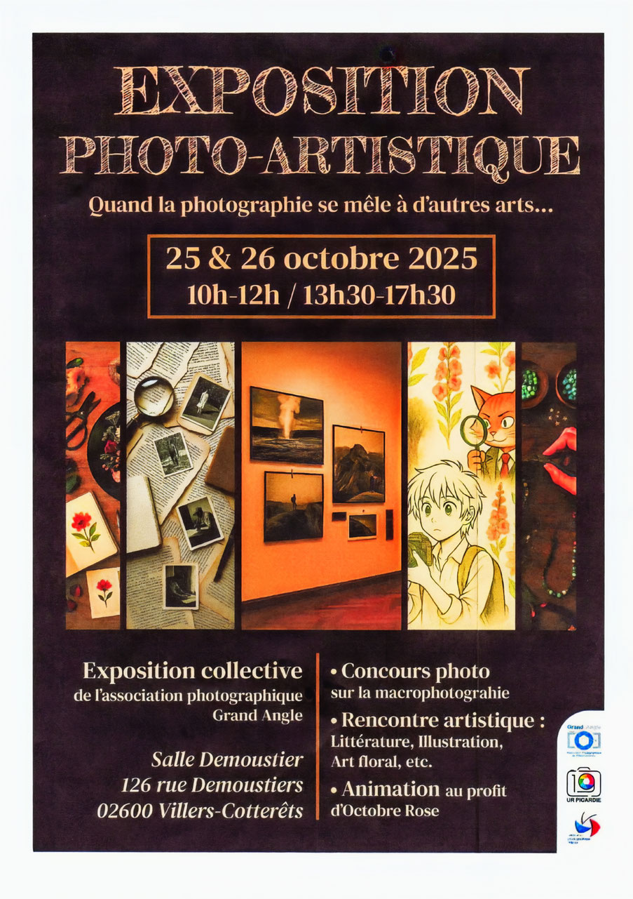 Notre exposition annuelle se tiendra à la salle Demoustier, place des écoles à Villers-Cotterêts. les samedi 14 et dimanche 15 octobre 2023 de 9h-12h et 13h30-19h (dimanche 18h00)